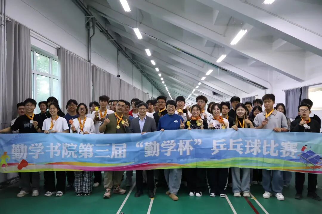为丰富书院学生校园文化生活,深入践行“说出来、动起来、做起来”育人理念,着力培养学生终身体育意识与科学锻炼习惯。4月17日下午,书院在怀远校区乒乓球活动室举行第三届“勤学杯”乒乓球赛颁奖仪式。书院党委副书记靳永雄、杨扬,团委负责人孙文元出席现场,乒乓球赛事参赛选手共同参与本次活动,颁奖仪式由禹文杰主持。 经过前期赛事的激烈角逐,各组别选手奋勇争先,女子单打、男子单打、女子双打、男子双打、混合双打及团体赛各奖项悉数决出。在热烈的掌声中,获奖选手依次登台领奖。靳永雄、杨扬为各组别冠亚季军颁发奖杯、奖牌及荣誉证书。这份表彰,既是对各位选手拼搏精神与优异成绩的充分肯定,更是对同学们奋勇争先、昂扬向上风貌的高度赞许。 活动现场还举行了精彩的乒乓球表演赛与趣味十足的娱乐赛。表演赛中选手们展现出精湛的球技,引得现场阵阵喝彩。娱乐赛面向全体师生开放,大家踊跃参与、同台互动,在轻松欢乐的氛围里感受乒乓运动的乐趣。 赛场竞技强体魄,乒乓逐梦育新人。本次活动不仅让同学们在运动中收获快乐、凝聚情谊,更以生动鲜活的形式,充分展现了勤学书院昂扬向上、团结奋进的文化氛围,传递出书院倡导全面发展、致力营造温暖有活力育人环境的理念,尽显勤学师生积极进取、同心奋进的良好风貌