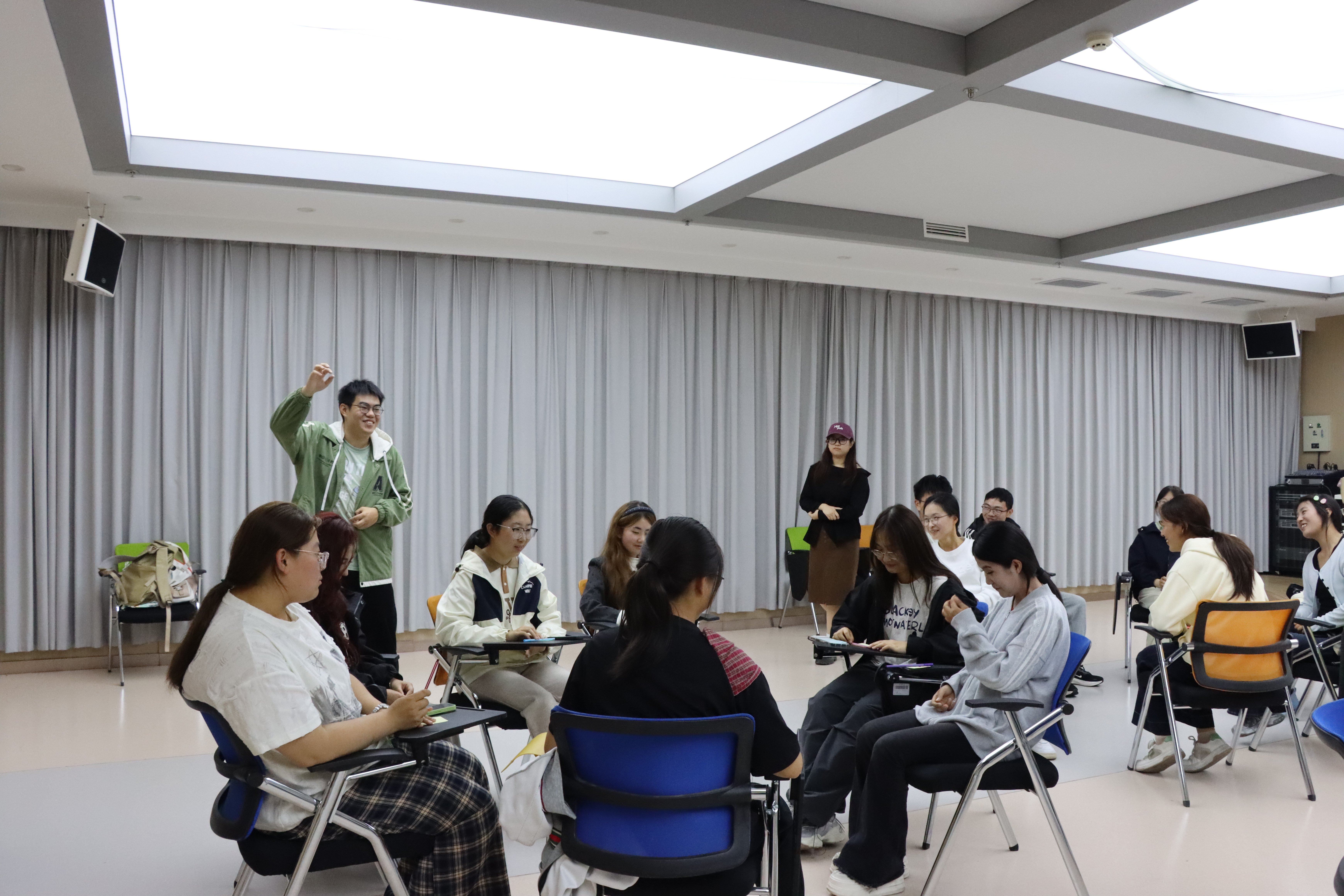 活动紧扣“消除隔阂,拉近距离”的核心目标,创新设计四大互动环节:“五角一元”游戏通过随机组队快速破除社交壁垒,“名字传递大作战”帮助新生高效记忆彼此信息,“你画我猜”以趣味互动激发创意表达,“主题剧场”则让新生在情景演绎中深化理解与共情。现场氛围从初始的腼腆拘谨,逐步升温至热烈活跃,新生们敞开心扉、积极参与,在欢声笑语中结识伙伴,畅谈大学理想与规划。