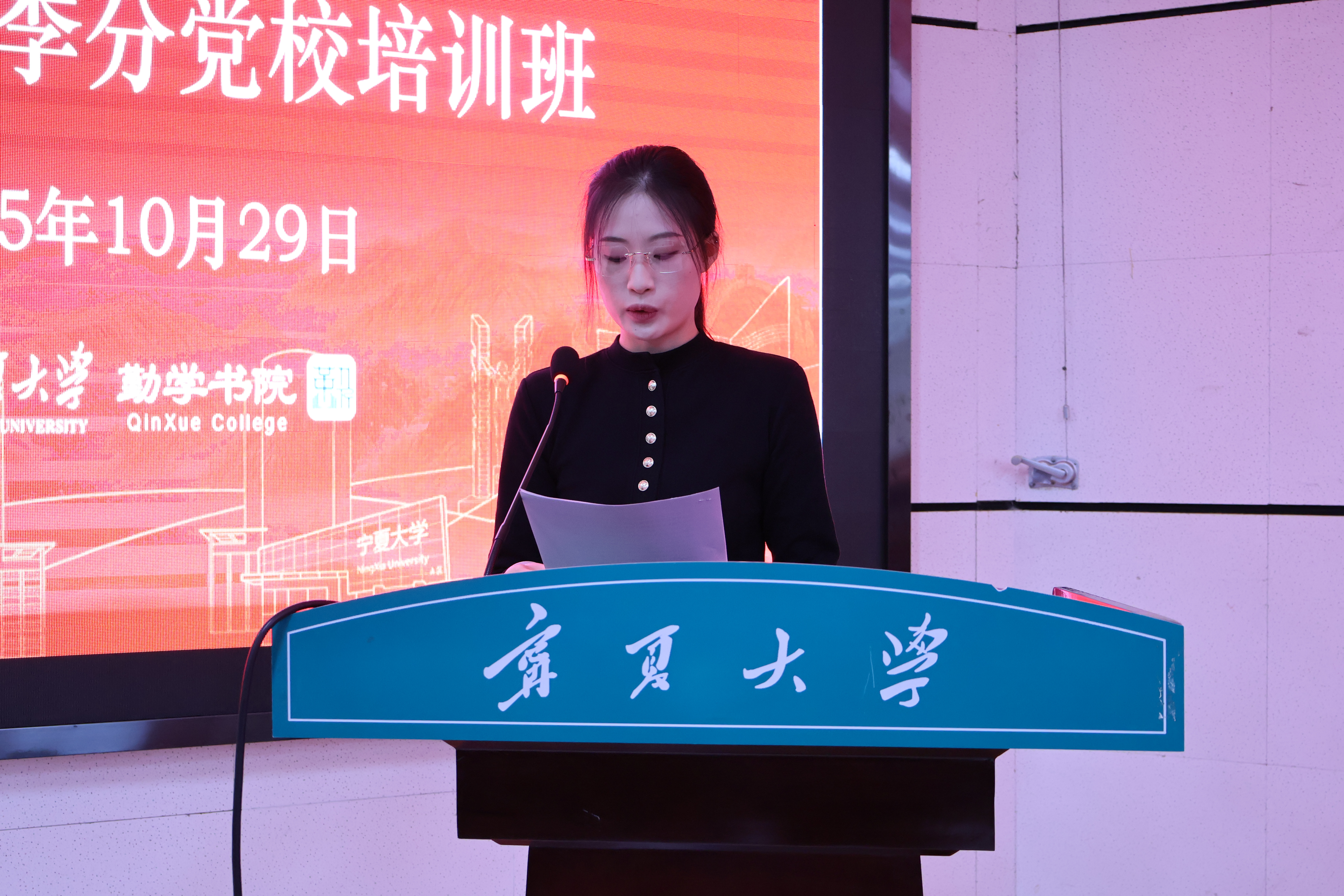 为深入学习贯彻党的二十届四中全会精神,进一步引导青年学生坚定理想信念、夯实思想基础,10月29日,勤学书院在文荟楼东报告厅隆重举行2025年秋季分党校培训班、入团积极分子培训班开班仪式暨第一讲。勤学书院党委副书记靳永雄、杨扬,副院长常江、王巳卉,党建思政中心辅导员姚硕,第六期入党积极分子、发展对象及入团积极分子共同参加。