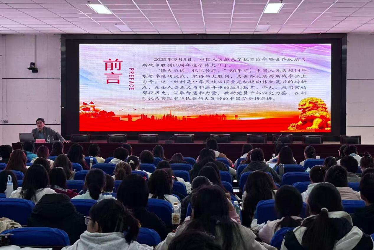 开班仪式结束后,靳永雄以“传承抗战精神 开创美好未来——纪念中国人民抗日战争暨世界反法西斯战争胜利80周年”为主题,为学员们讲授第一课。他带领大家回顾了那段艰苦卓绝的岁月,深刻阐释了“天下兴亡,匹夫有责”的爱国情怀与民族气节。他强调,新时代青年要将抗战精神转化为坚定信仰、强化理论武装与勇于担当作为的实际行动,从历史中汲取前行力量,以奋斗姿态书写未来。