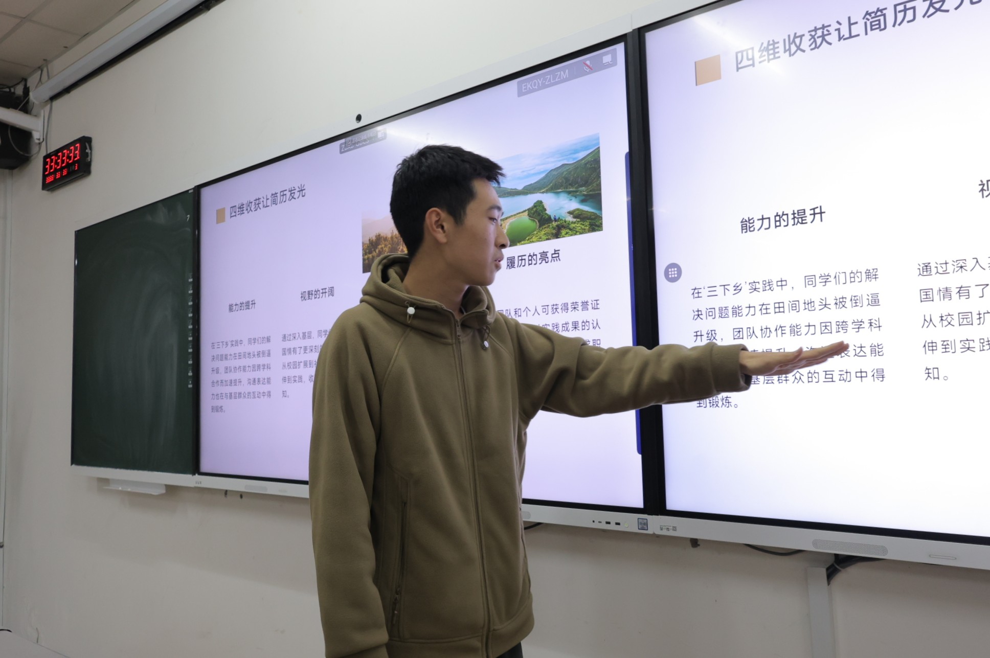 本次培训会聚焦“三下乡”与“返家乡”两大核心实践活动,由书院团委科技实践部进行系统讲解。工作人员首先明确了会议的核心目标,随后围绕“三下乡”的定义、社会实践价值展开分享,重点介绍了涵盖理论宣讲团、乡村振兴促进团等领域的四大实践赛道。通过展示往届优秀团队的荣誉证书和活动照片,以实际案例帮助参训人员更直观地理解实践的意义。最后工作人员又对“返家乡”活动的定义和特点进行了细致解读,梳理了九大实践方向,并强调了该活动在提升专业技能、增强工作能力和培养家乡认同感方面的重要作用,为实践委员们今后的工作提供了明确的指导。