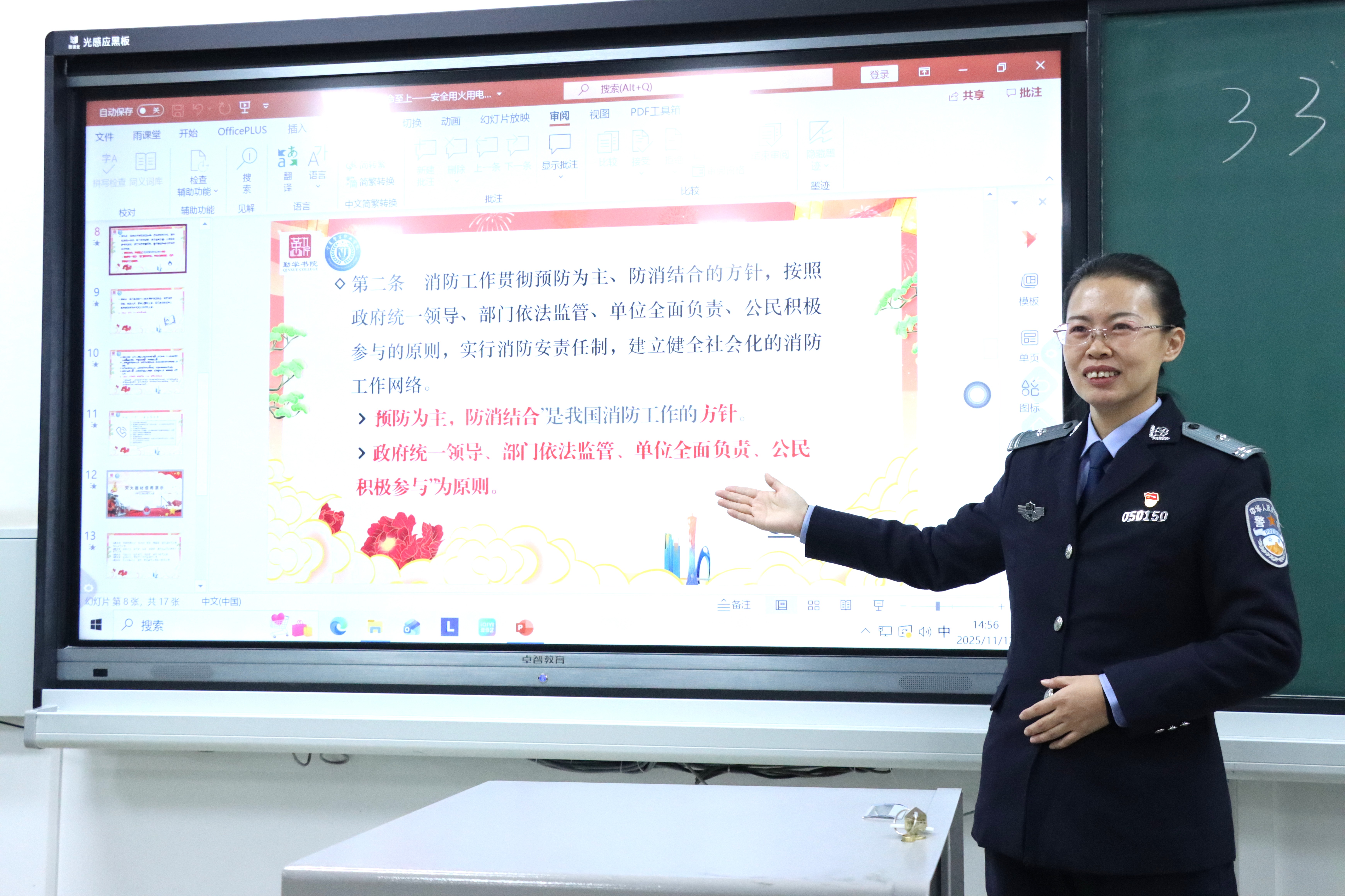 讲座开场,讲解员先以情景模拟为引子,结合校园火灾的经典案例,通过巧妙设问激发了学生对火灾应急处置核心要素的积极思考。在讲座的核心部分,讲解员重点解读了《中华人民共和国消防法》,并结合实际案例,强调了单位和个人的法定消防安全责任,明确指出任何主体都不可推卸责任,尤其是成年公民,更应依法担负起参与有组织灭火工作的法定职责。