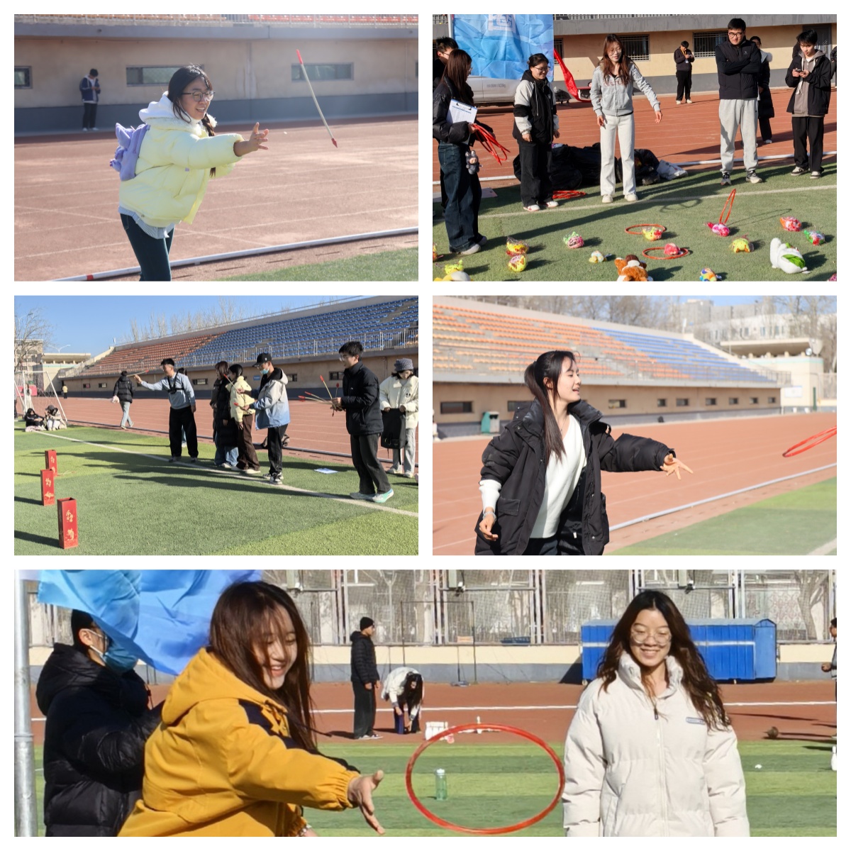 「投壶」赛场,持箭者凝神瞄准、稳步投掷,箭矢划破空气的轨迹里满是专注,箭矢稳稳入壶,引得现场喝彩连连!「套圈」区,同学们站在标线外瞄准目标轻抛套圈,弧线灵动起落间,喝彩与笑意交织。每一次精准命中都让现场沸腾,满场洋溢着轻松惬意的气息。其他个人项目中,大家挑战自我、突破极限,用汗水书写专属高光时刻~