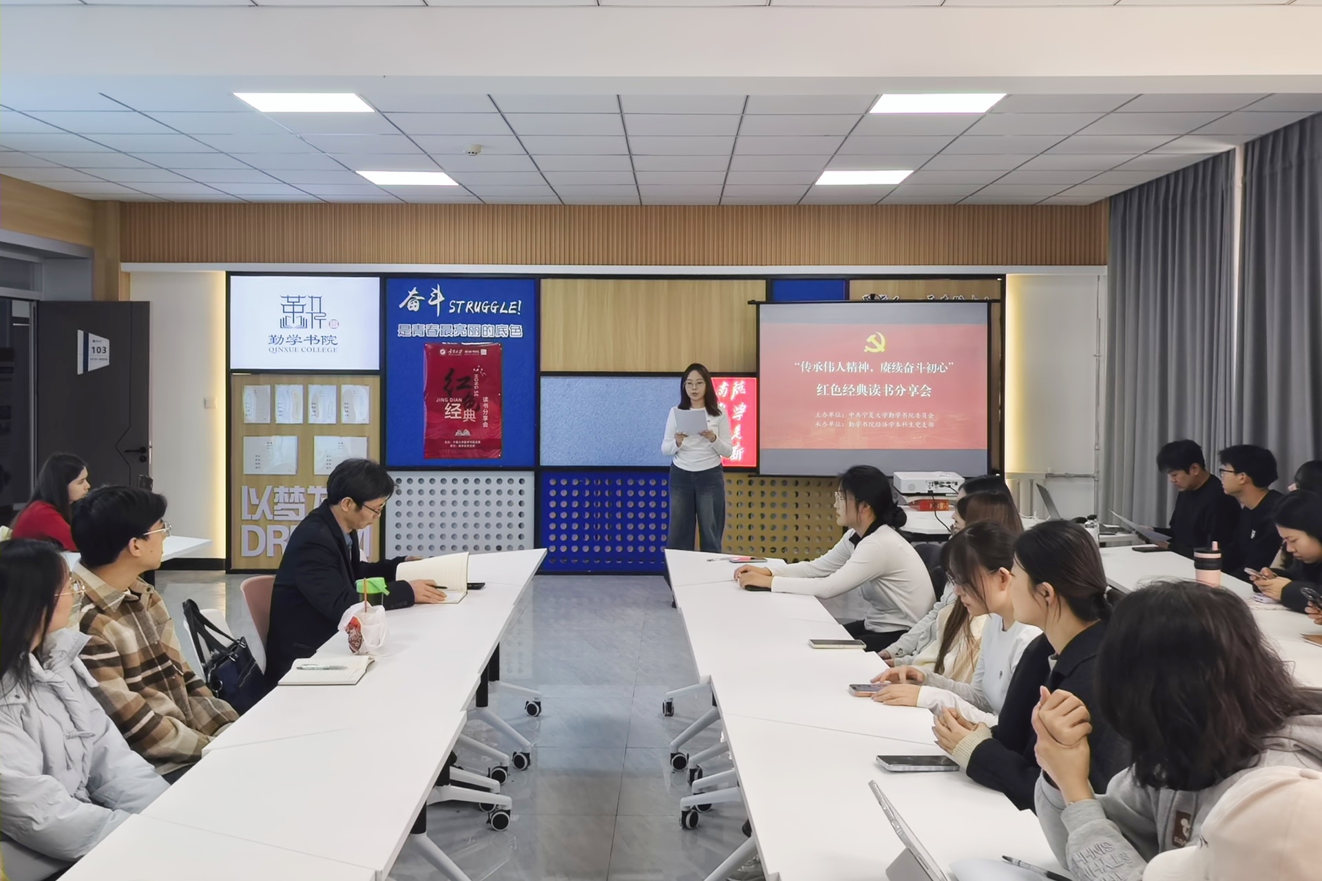 为深入贯彻落实《勤学书院师德师风专项巡察反馈问题整改方案》的工作部署,持续巩固2025年度民主生活会整改措施成效,勤学书院于2026年正式启动“红色经典读书分享会”系列活动,由各学生党支部轮流承办。活动旨在引导党员师生研读红色经典、筑牢信仰根基,从革命传统中汲取成长力量,在学思践悟中坚定理想信念。