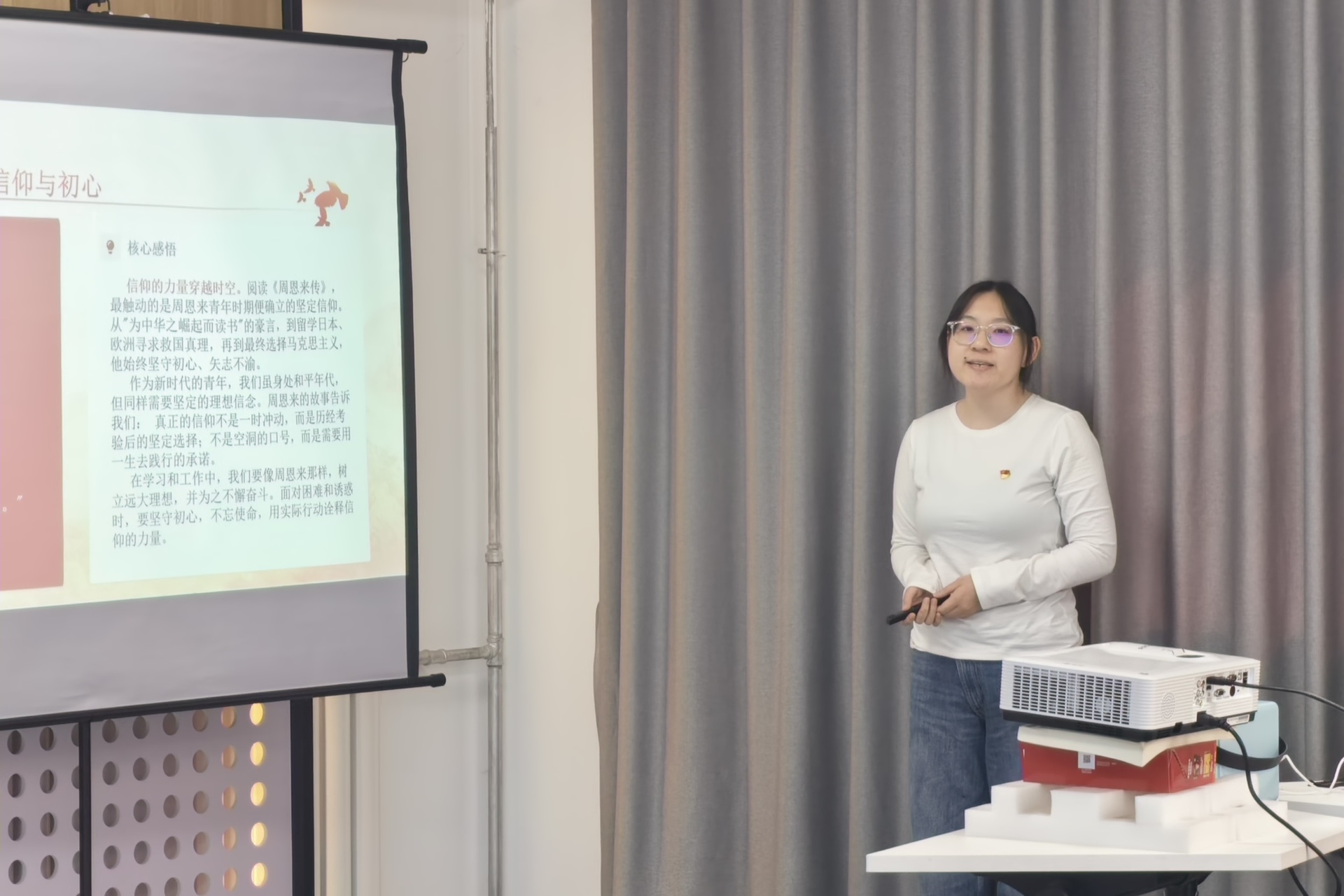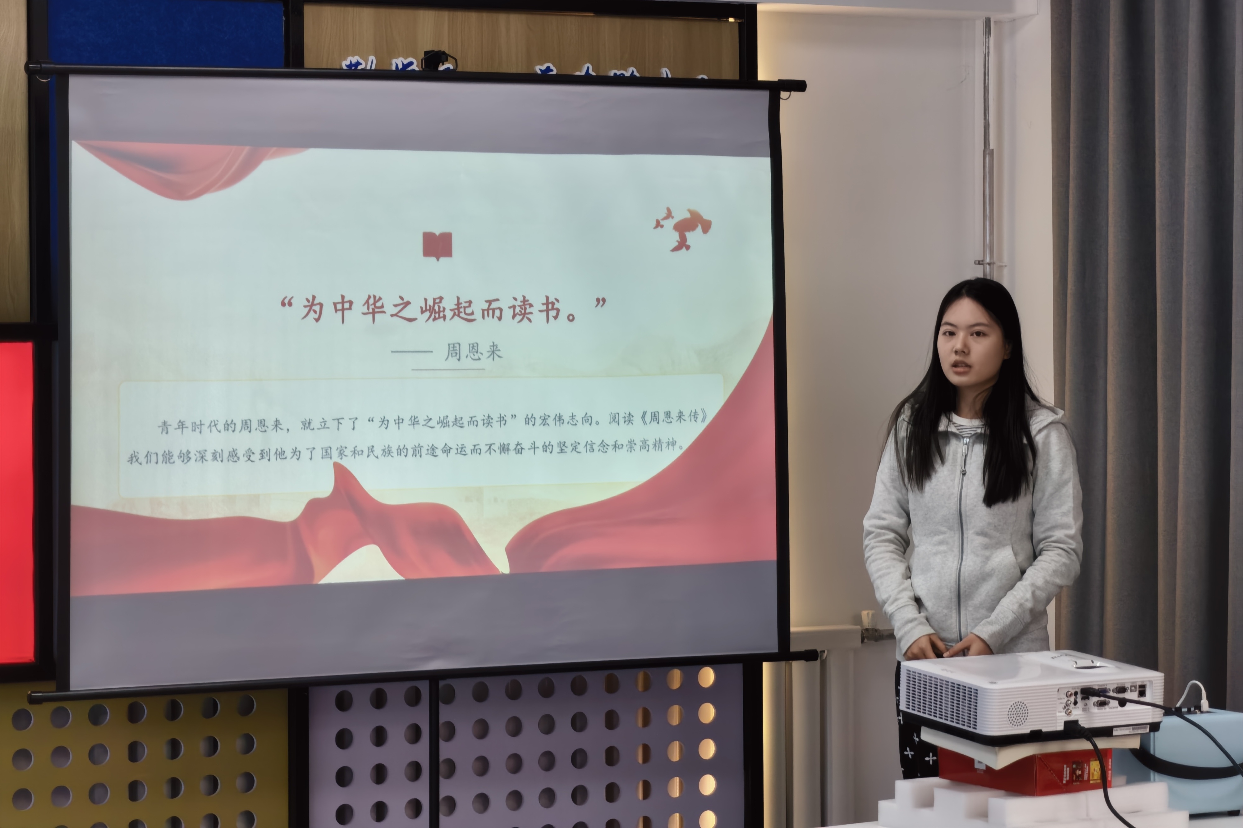 本次读书分享会形式丰富,以经典诵读、情景剧演绎等形式再现红色经典中的赤诚信仰。吴双分享了《可爱的中国》,引领大家感悟信仰力量。夏语诺等三位同学则围绕《周恩来传》,带领现场学生品读伟人故事、汲取前行智慧。